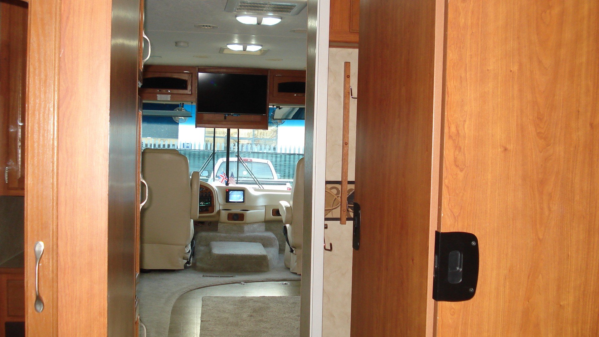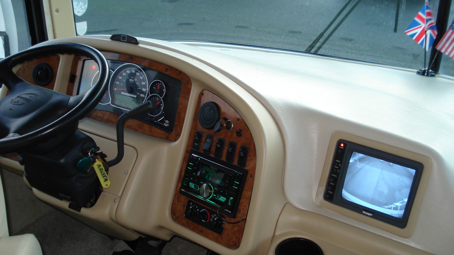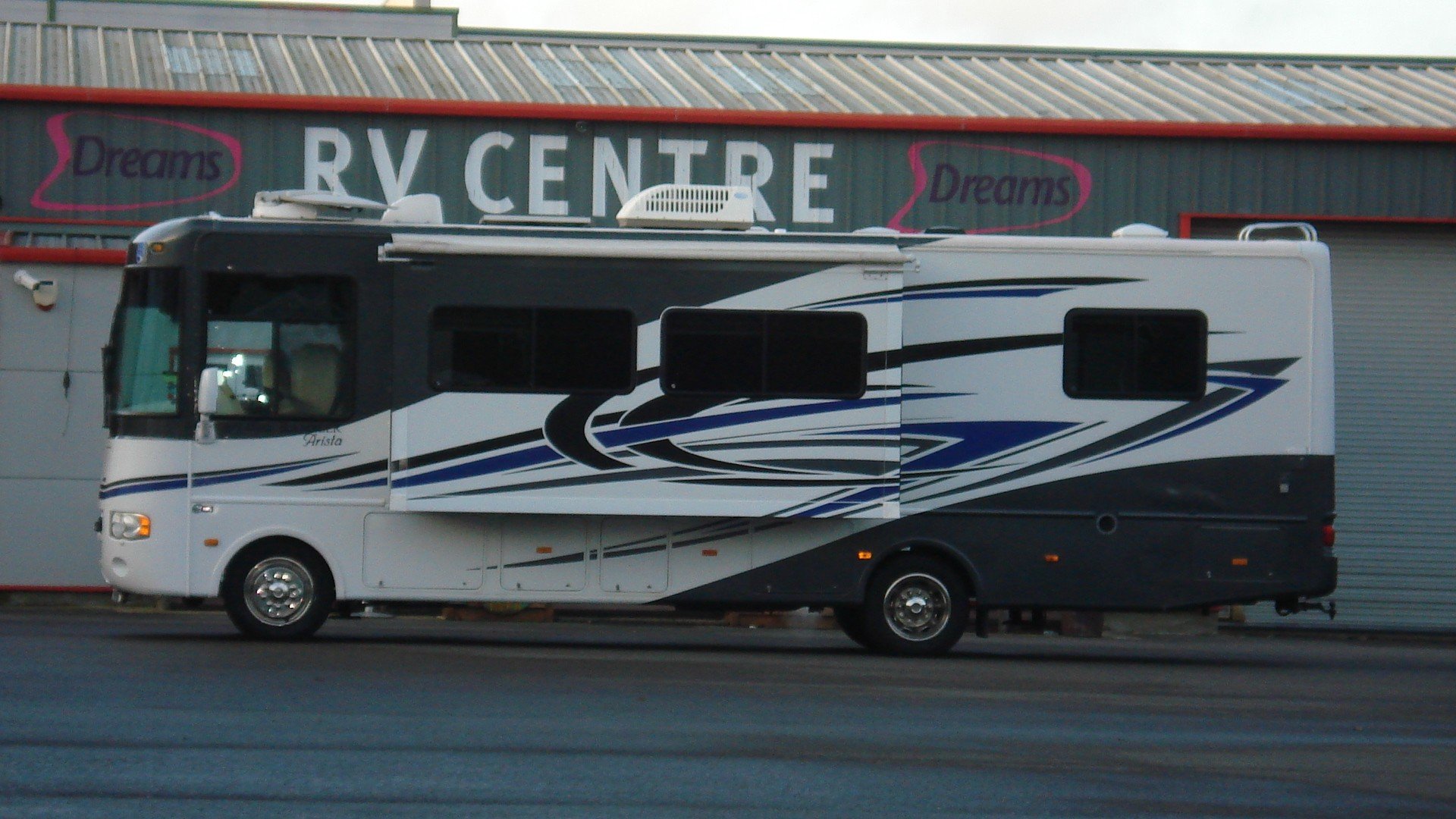 Holiday Rambler Arista. 310 model. Workhorse chassis. 30ft with Super slide. Chevy 8.1 vortec V8. Alison 5sp. Auto with tow haul. Long range LPG Conversion. Basement Lockers with Through lockers. Rear Queen Island bed in end bedroom. Ample wardrobe and storage space. Fitted T.V. and invertor Shower room with W.C. and vanity wash basin. Laminated type flooring through to kitchen area with all fitted appliances. Gas and electric water heater. Dinette/bed with fitted seatbelts. All re upholstered in cream Leather. Bed settee with fitted seat belts. Electric six way Cream Leather front captains 360 seats with 3 point belts. Front T.V. Oyster self seeking satellite system 240/110/12v electrics. 12v 240v invertor. On board 5kva Onan generator. Large solar panel. Hydraulic levelling jacks. Reversing camera and sensors. UK spec tow hitch and electrics. Insurance approved alarm/immobiliser. Plus all the standard American RV refinements . A well maintained example of one of these quality H.R. RVs. with all manuals/and documented history.